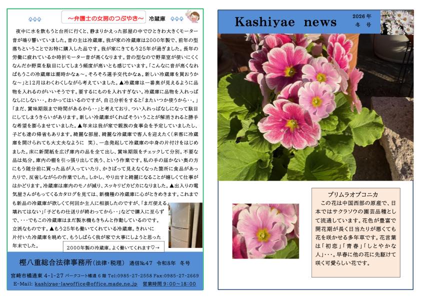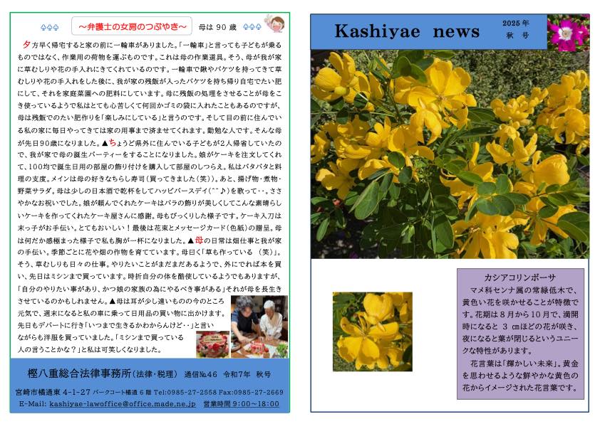 樫八重総合法律事務所は30年以上の経験を持つ頼れる弁護士事務所です。アットホームな雰囲気で相談しやすさを心がけています。また、当事務所では以下は無料相談ができます。相続・遺言・債務整理 (民事再生・破産など)・事件依頼・法テラスご利用。まずはお気軽にお声かけください。